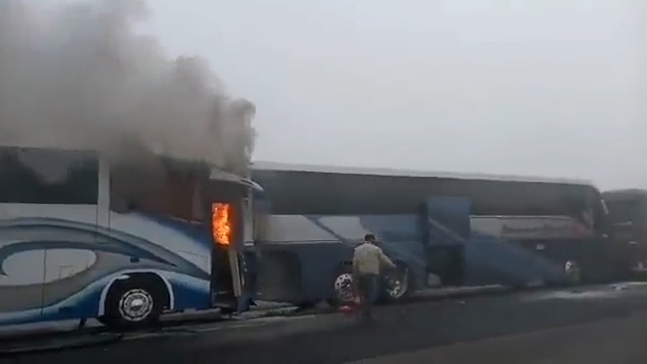 El autobús donde eran transportados los seguidores del equipo regiomontano participó en una carambola, probablemente debido a la niebla.