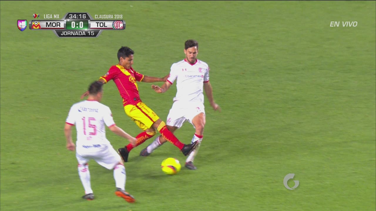Pero con el paso de los minutos poco a poco los mexiquenses equilibraron el juego. Pablo Barrientos comenzó a dirigir los embates de Toluca, y a los 34’ llegó la jugada clave del primer tiempo, cuando Ruidíaz le dejó los tachones en la pierna de Santiago García y el árbitro no dudo en scarle la roja directa al peruano.