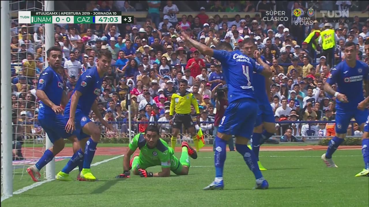 El defensa apareció de nuevo despejando un tiro libre y luego un centre. ¡Pumas, a centímetros del gol!