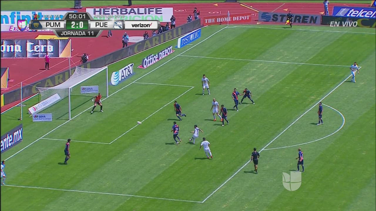 Un tremendo error de la defensa poblana, terminó en posesión del 'Tolu', quien no pudo aumentar la ventaja.