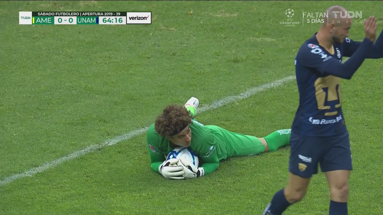 Disparo raso desde las afueras del área que contuvo al portero del América al 64’.
