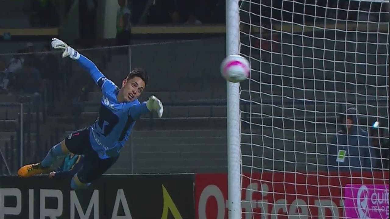 Luis Montes sacó un potente disparo que el guardameta de Pumas logra desviar con un gran lance y así evitar la caída de su arco. En la más clara del cuadro visitante.