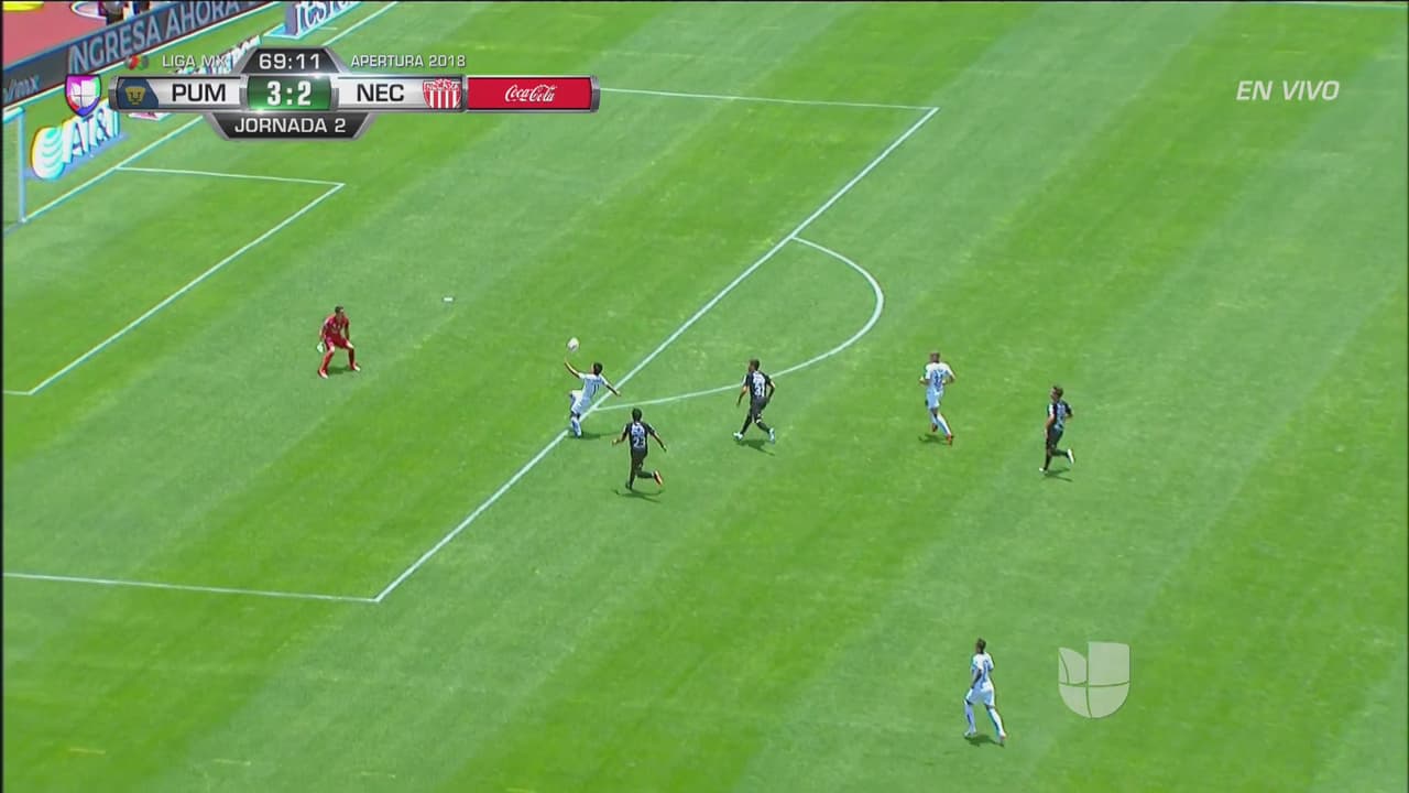 'El Chavo' techó a Hugo González y el balón apenas se fue por un lado. Qué calidad de Alustiza.
