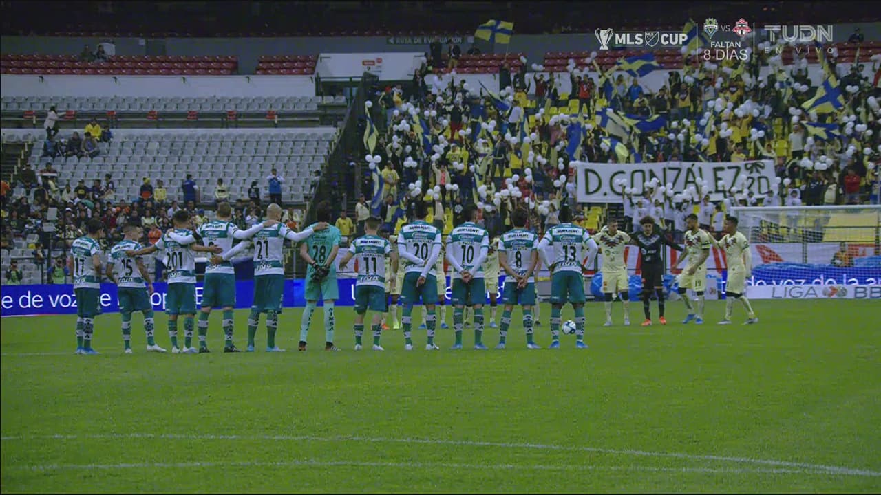 revio al duelo ante Santos, los jugadores de ambos equipos se entrelazaron en la media cancha.