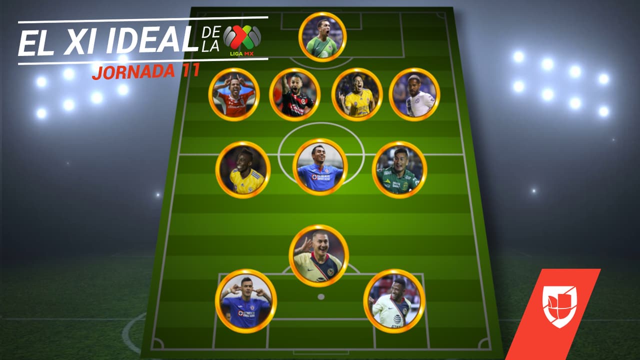 Además de las Águilas, Cruz Azul y Tigres destacaron en la alineación de la Jornada 11 tras golear 4-1 a Pachuca y Gallos, respectivamente.