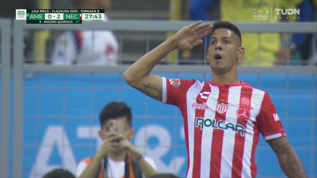 El ‘Comandante’ Quiroga volvió a poner orden en el terreno de juego al 27’ y marcó su doblete con un remate al ángulo superior derecho de las redes de Ochoa, que mandó al conjunto azulcrema en la lona.