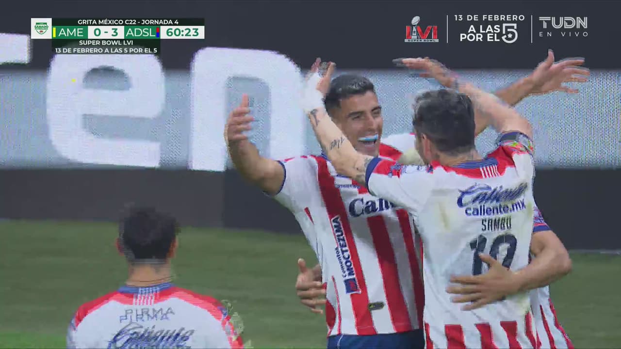 En la segunda parte una increíble jugada que San Luis hizo a su favor, Rubens Sambueza le dio el pase que terminó en los pies de Sanabria quie llegó al fondo del área y ante el achique de Memo Ochoa los de San Luis tuvieron la oportunidad de finiquitar la jugada. Abel Hernández definió con total facilidad al fondo de las redes.