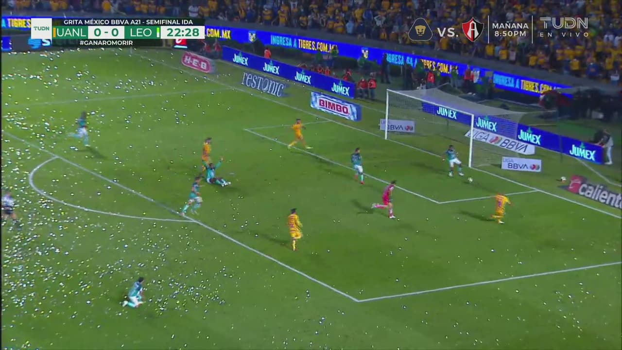 Tiro atajado Por arriba en el centro del arco. Nicolás Ibáñez (Pachuca) disparo de cabeza desde el centro del área. Asistencia de Daniel Aceves con un centro al área.