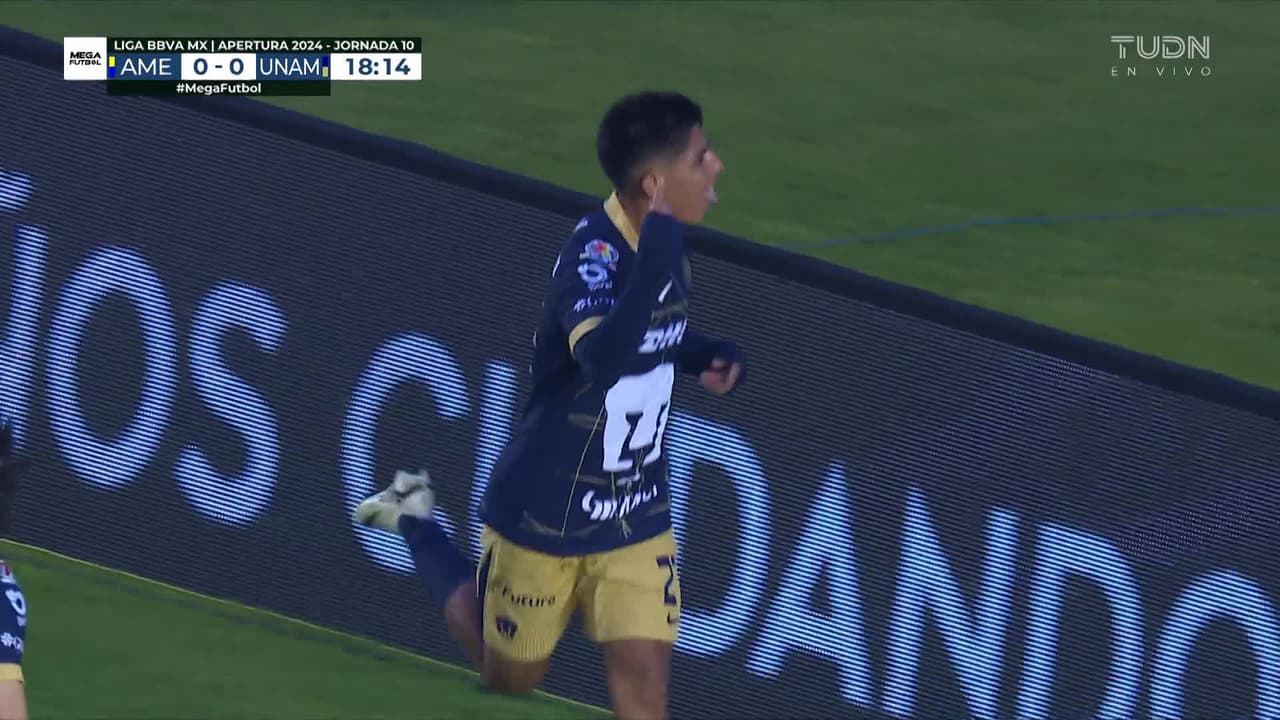 El mediocampista del América se animó y le pegó de larga distancia con un zurdazo que pasó cerca de las redes de Pumas.