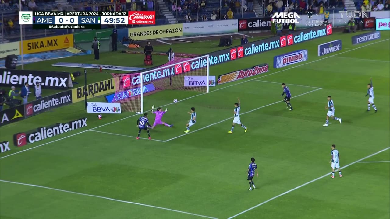 Acevedo hace una doble atajada ante disparos del América por parte de Miguel Vázquez.