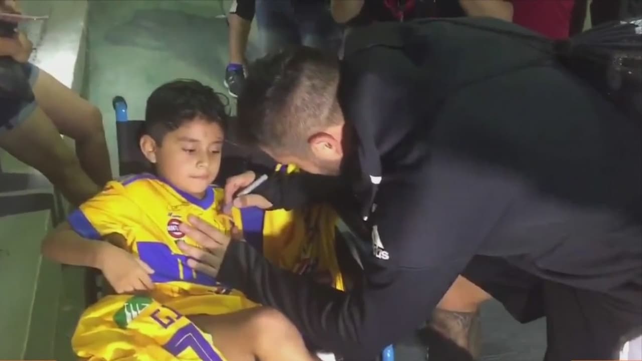 Tras la derrota ante América, el delantero le regaló una camiseta y le dio su autógrafo a un niño fanático de Tigres que padece dificultades físicas.