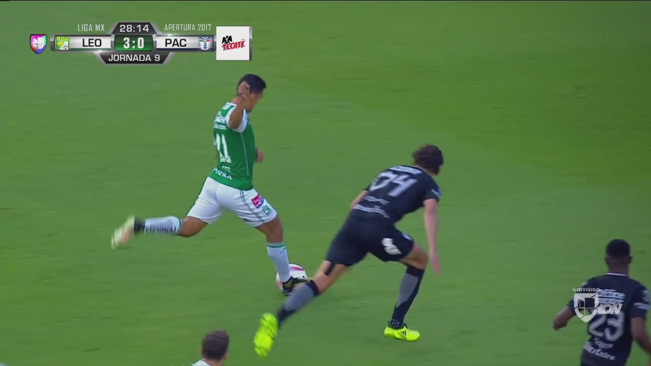 El colombiano aprovechó la avenida que dejó la zaga hidalguense quitándose sin problema hasta a cuatro jugadores.