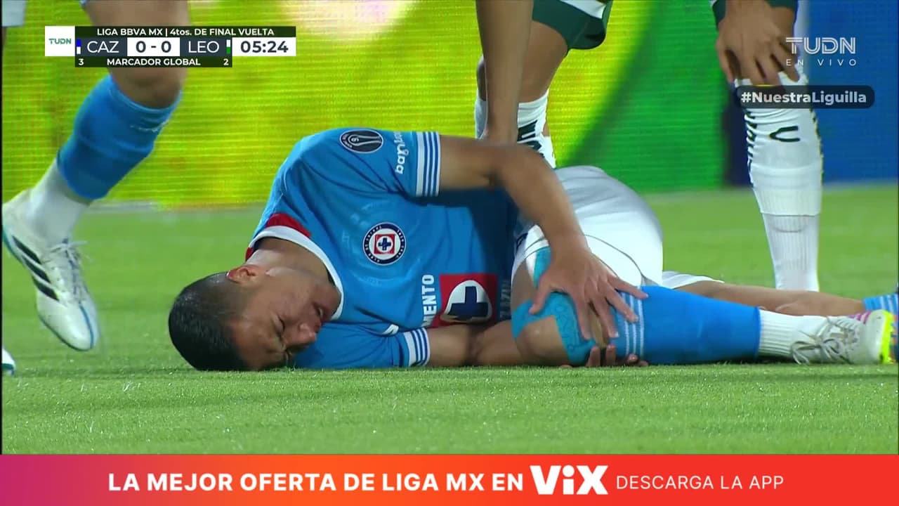 Apenas corría el minuto seis del primer tiempo de la vuelta de los Cuartos de Final del Clausura 2025, cuando en un intento de recuperar un balón servido por Sepúlveda, en un ataque de Cruz Azul, el medio ofensivo hizo un giro forzado en el que terminó en el césped al haber sufrido una aparente lesión al hacerlo.