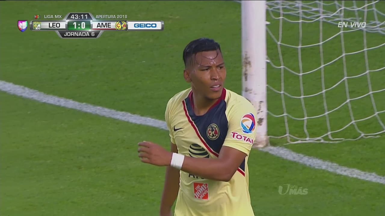 El colombiano de las Águilas se puso frente a Cota pero sin ángulo sacó un disparo que l portero desvío de buena forma.