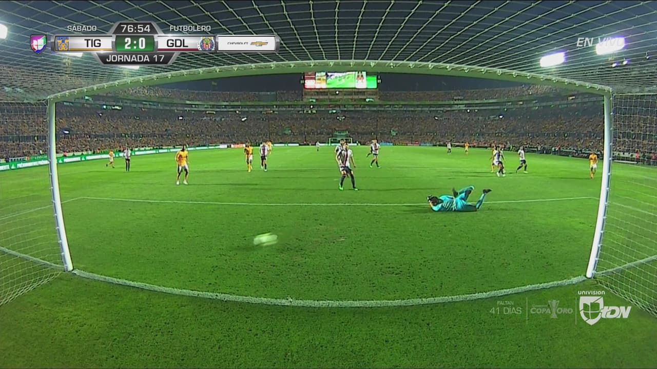 El Chino dio una espectacular media vuelta para sacar un zurdazo que venció a Miguel Jiménez y puso el 2-0 para los Tigres.
