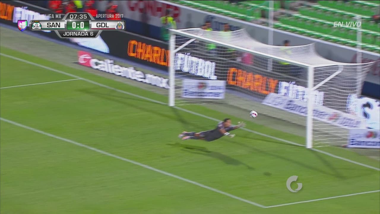 El defensa central se sumó al ataque, se abrió el espacio y sacó un disparo que pasó muy cerca de la portería de Rodolfo Cota.
