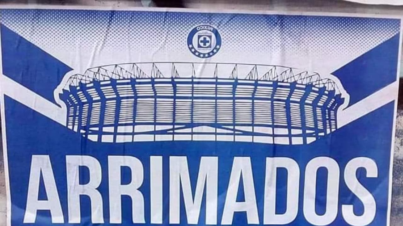 La mañana de este sábado aparecieron letreros azules en las bardas del estadio capitalino con la leyenda “Arrimados” y con el escudo de Cruz Azul, en una obra de La Monumental 16.