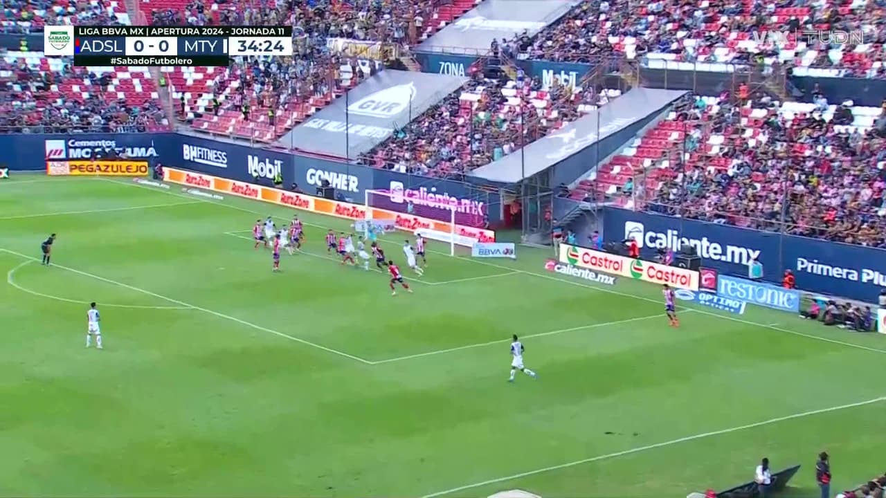 Gerardo con un gran tiro de pierna izquierda desde fuera del área pero se va por un costado.