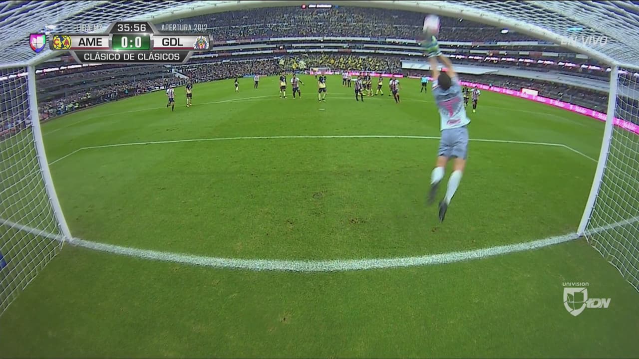 Gran cobro de tiro libre por parte del 9 de las Chivas.