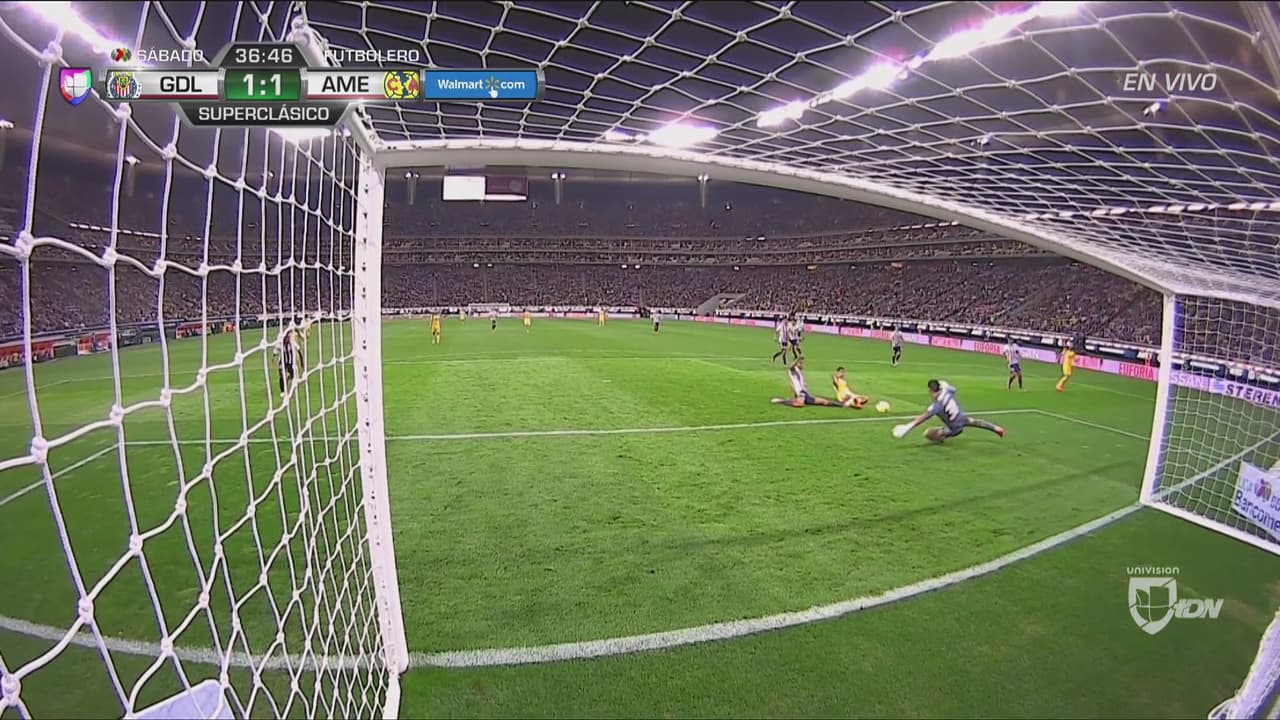Extraordinaria tapada del portero de Chivas tras un gran centro desde la derecha.