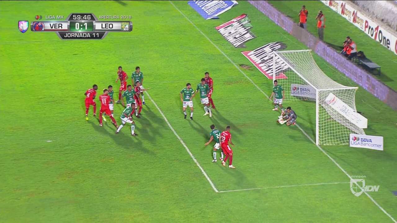 Reflejos felinos de Cota para contener un cabezazo del ‘Polaco’ Menéndez, en la primera llegada de peligro de Veracruz.