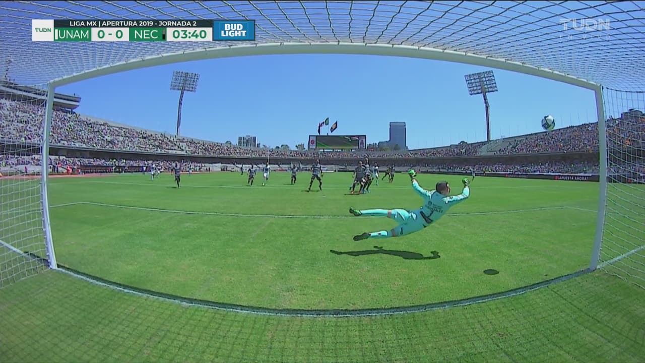 El portero de Necaxa alcanzó a desviar un tiro de Ignacio Malcorra.