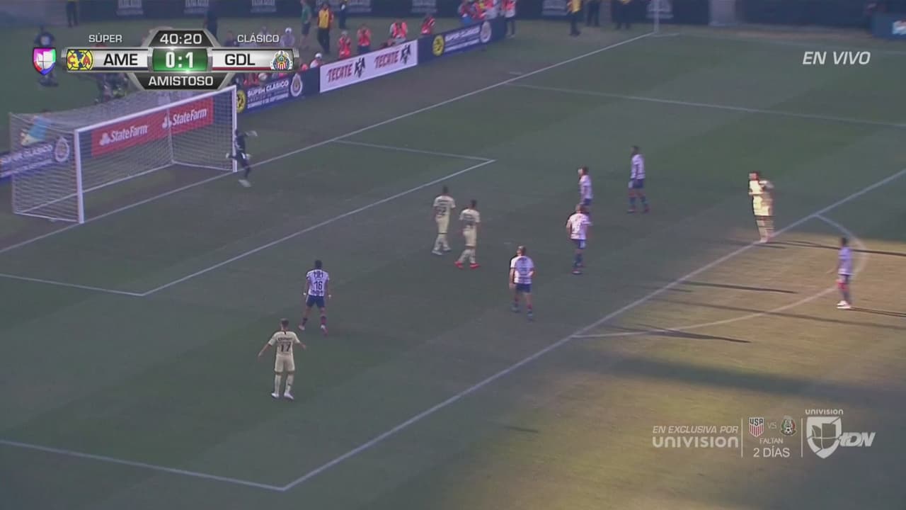 Disparo largo de García posterior a un tiro de esquina que el arquero del Guadalajara logro detener.