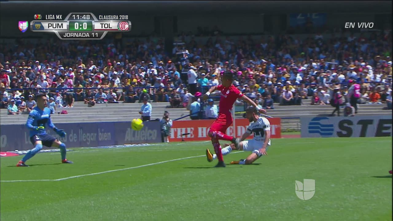 El portero de Pumas le puso el "pecho a las balas" al tiro de Uribe para evitar el 1-0 de Toluca.