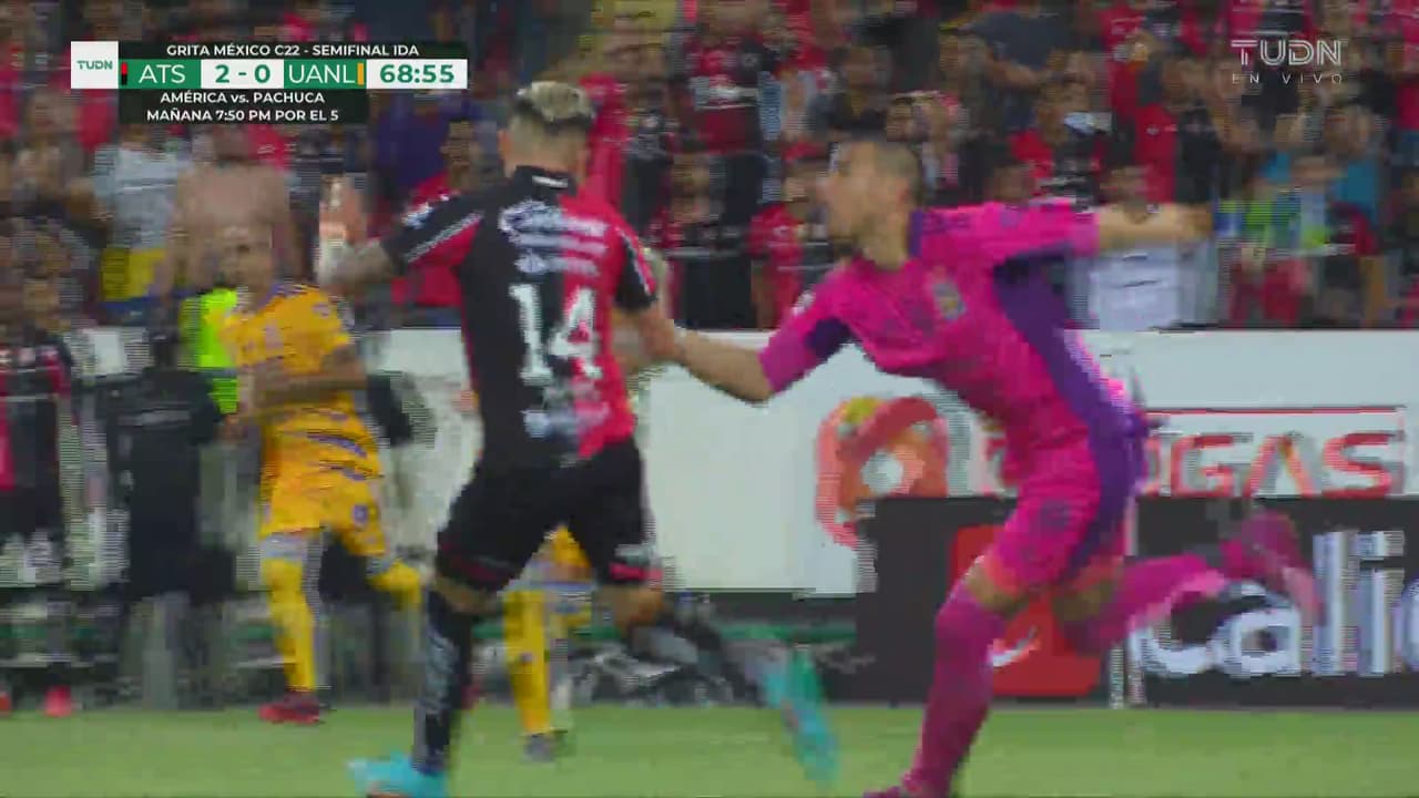 Atlas mantuvo el ritmo y la presión y fue en una salida de Tigres en donde Luis 'Hueso' Reyes quedó habilitado desde fuera del área para sacar un zurdazo y vencer a Nahuel Guzmán para el 2-0 al 60'.