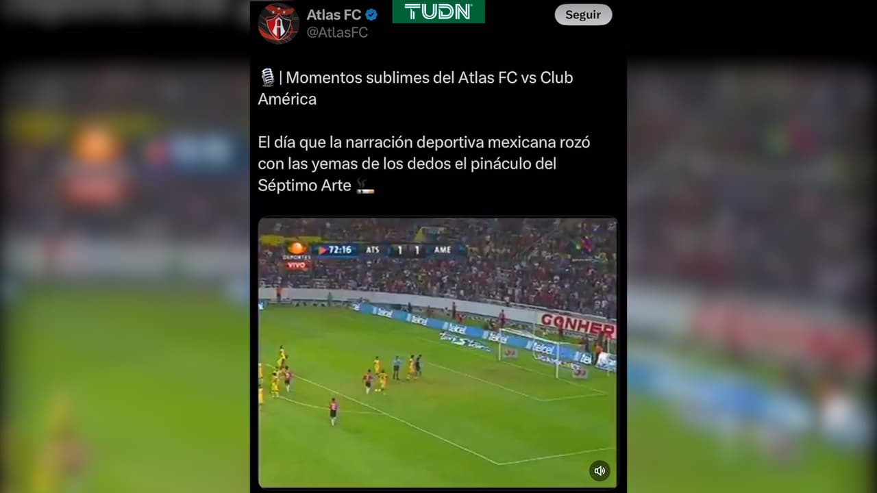 "Momentos sublimes del Atlas FC vs Club América. El día que la narración deportiva mexicana rozó con las yemas de los dedos el pináculo del Séptimo Arte", ironizó la cuenta rojinegra.