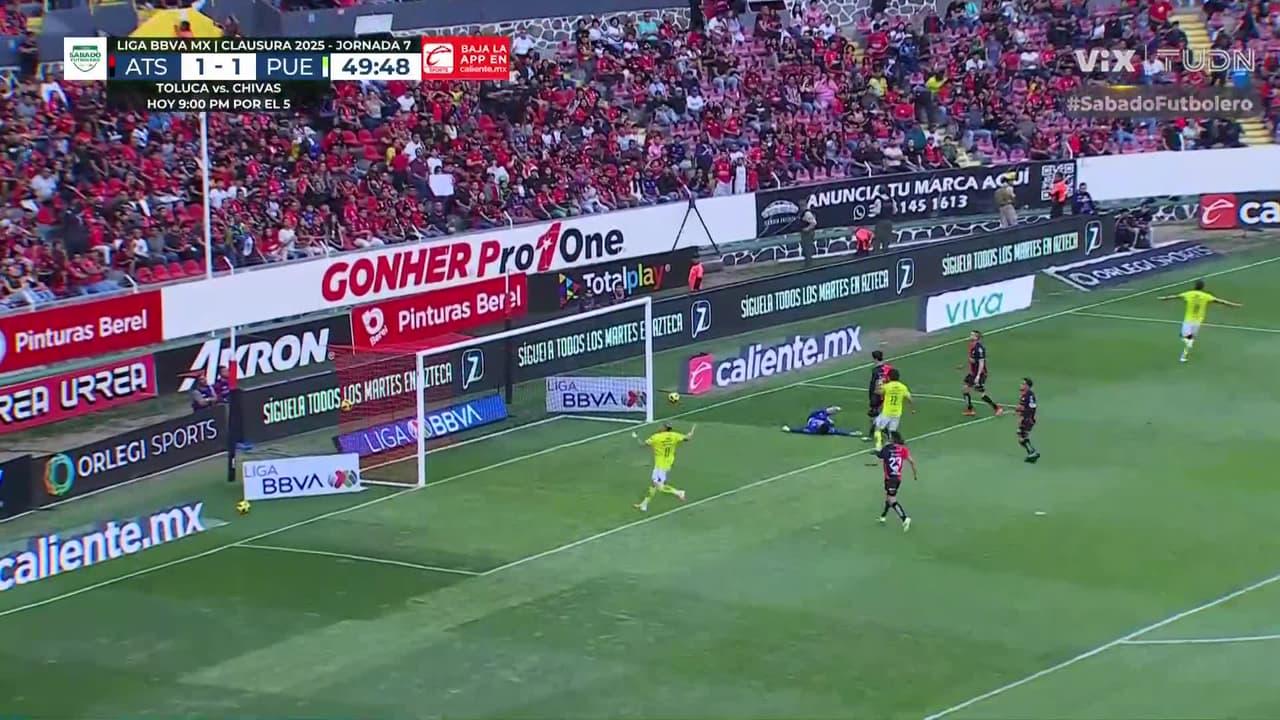 Atlas nunca bajó los brazos y en diferentes oportunidades puso en peligro el arco rival hasta que llegó la jugada que decretó el empate, Diego González recibió solo dentro del área ante la mala marca de la defensa poblana y el paraguayo la puso en el ángulo en el agregado.