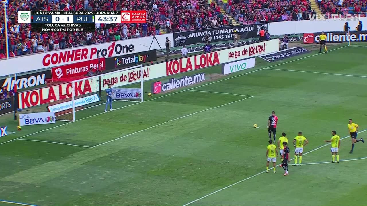 Casi al final del primer tiempo, se marcó penalti a favor de los Zorros, Uros Durdevic se paró frente al ‘Wacho’ Jiménez y con un cañonazo perforó la meta de la Franja para el empate momentáneo de Atlas.