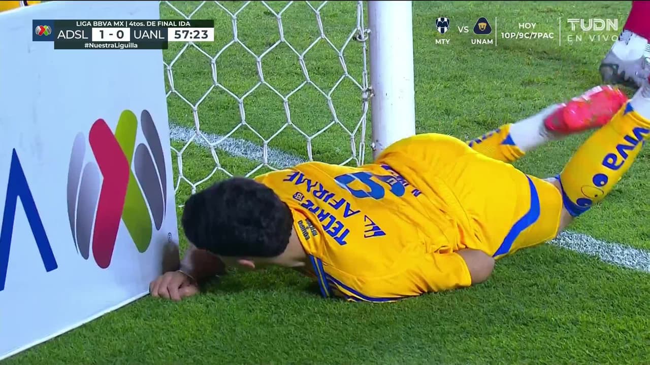 A los 35 minutos apareció la mala suerte para los Tigres luego de que Joaquim Henrique mandara el balón al fondo de su propia portería en su intento de desiar un centro de Ricardo Chávez para poner el 1-0 en favor de Atlético de San Luis.