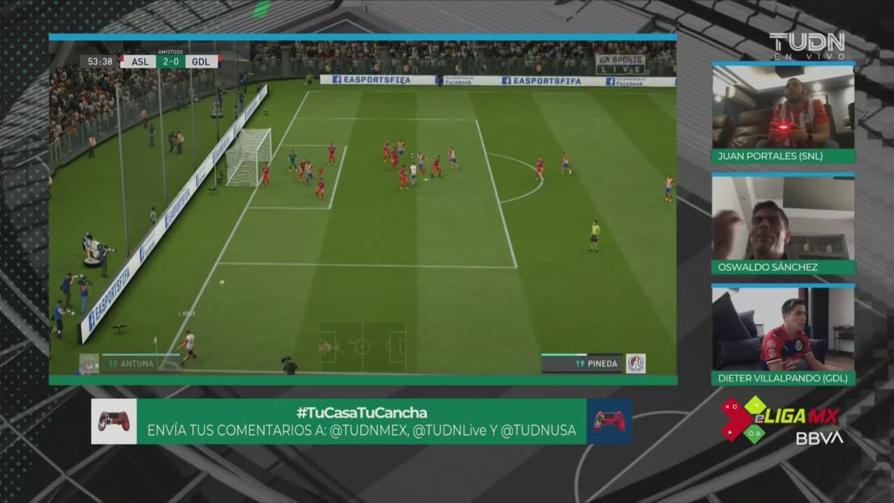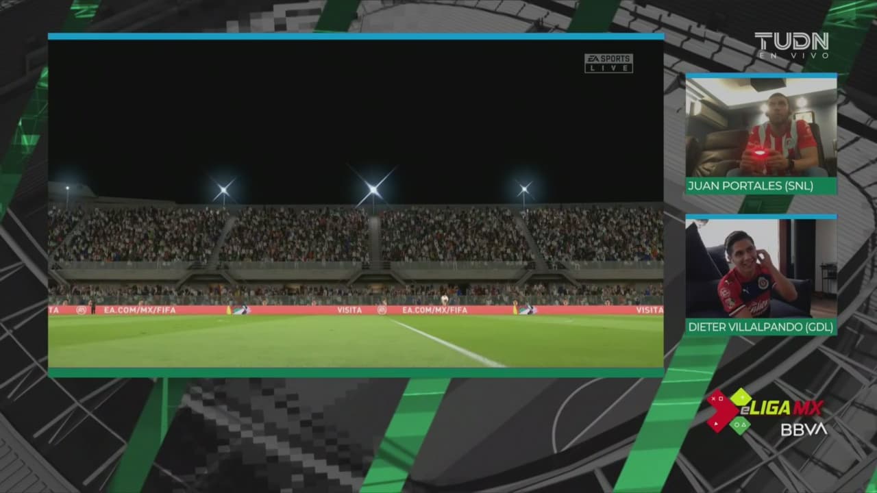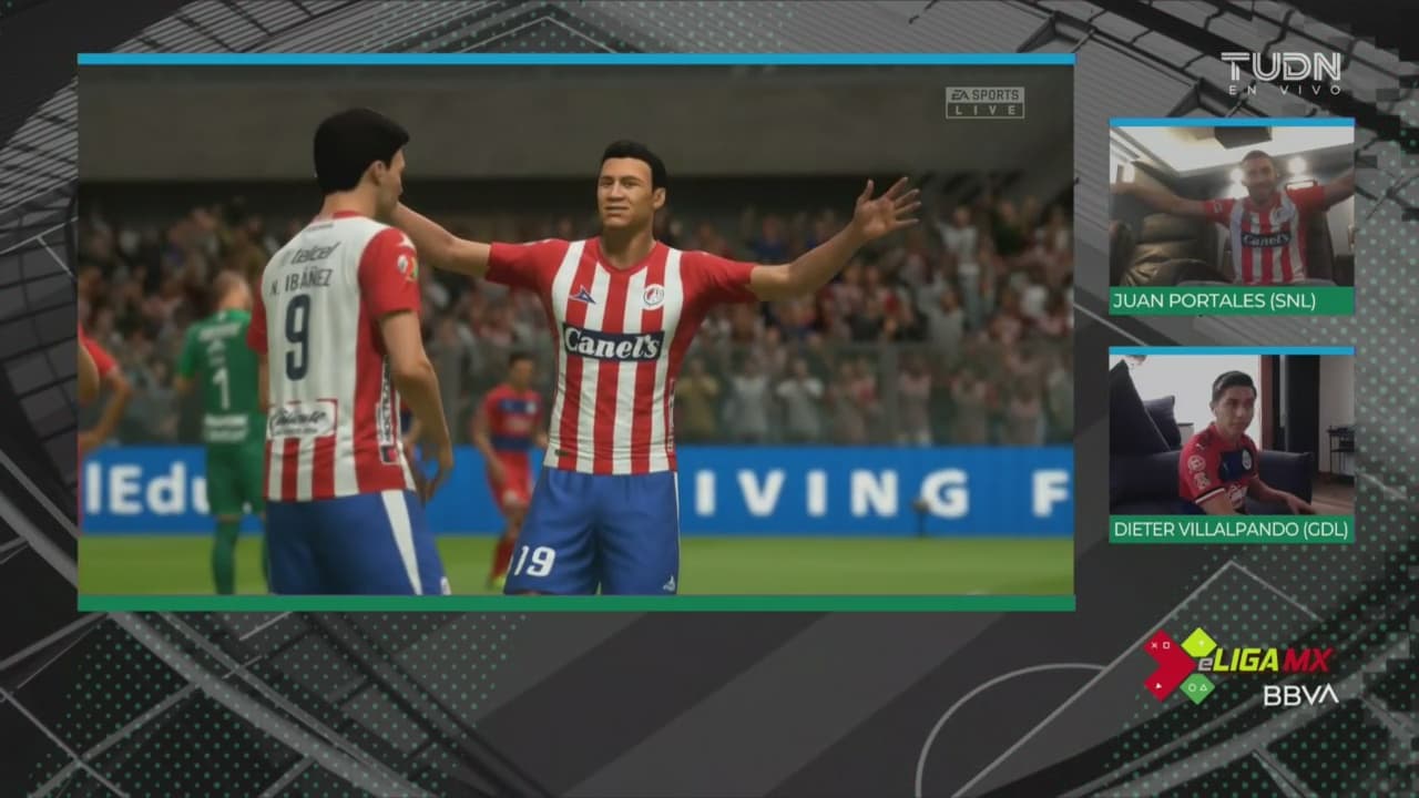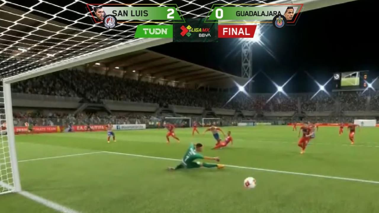 Juan Portales pegó primero con un gol al minuto 6 de Diego Pineda, cuyo personaje en el videojuego no dudó en pegarle a la esférica de primera intención frente a la portería para abrir los cartones a favor de los potosinos.