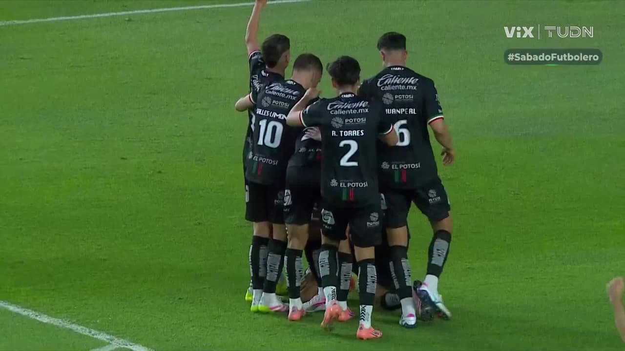 Ya en la segunda mitad, Jesús Medina se encuentra un balón en el área de Gallos y empuja el segundo tanto de San Luis.