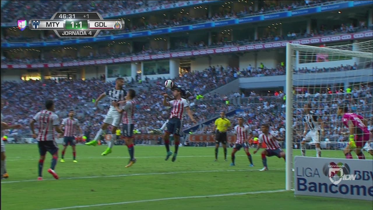 Buen remate del refuerzo que llegó a Monterrey para este torneo, pero el balón se fue apenas desviado de la portería de Rodolfo Cota.