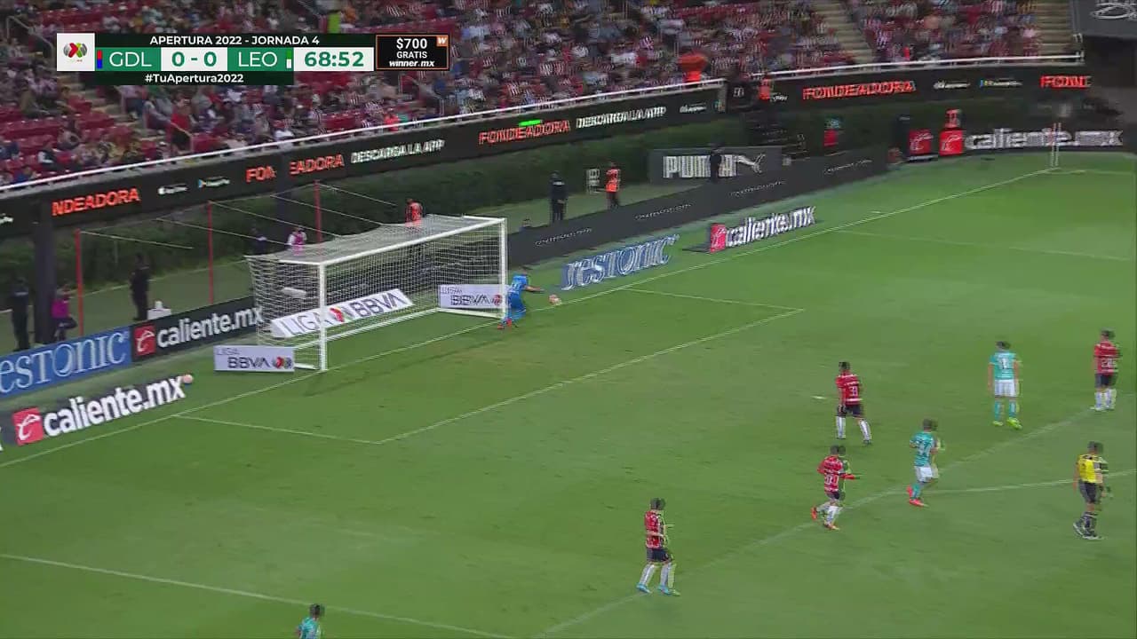 ¡Balazo! Byron Castillo prueba a Jiménez que detiene el balón