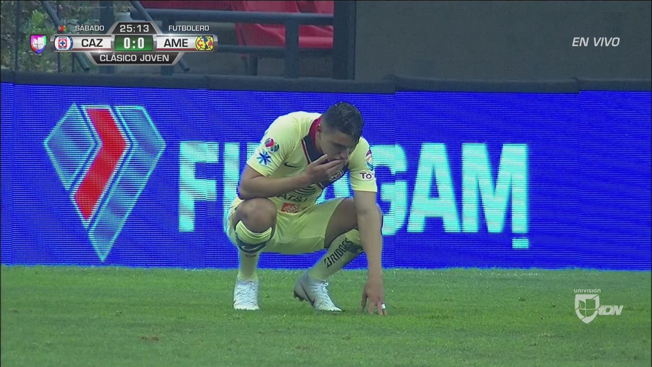 Édgar Méndez intentó meter un centro, pero el balón le pegó en la cara al lateral del América y de inmediato se presentó una hemorragia.