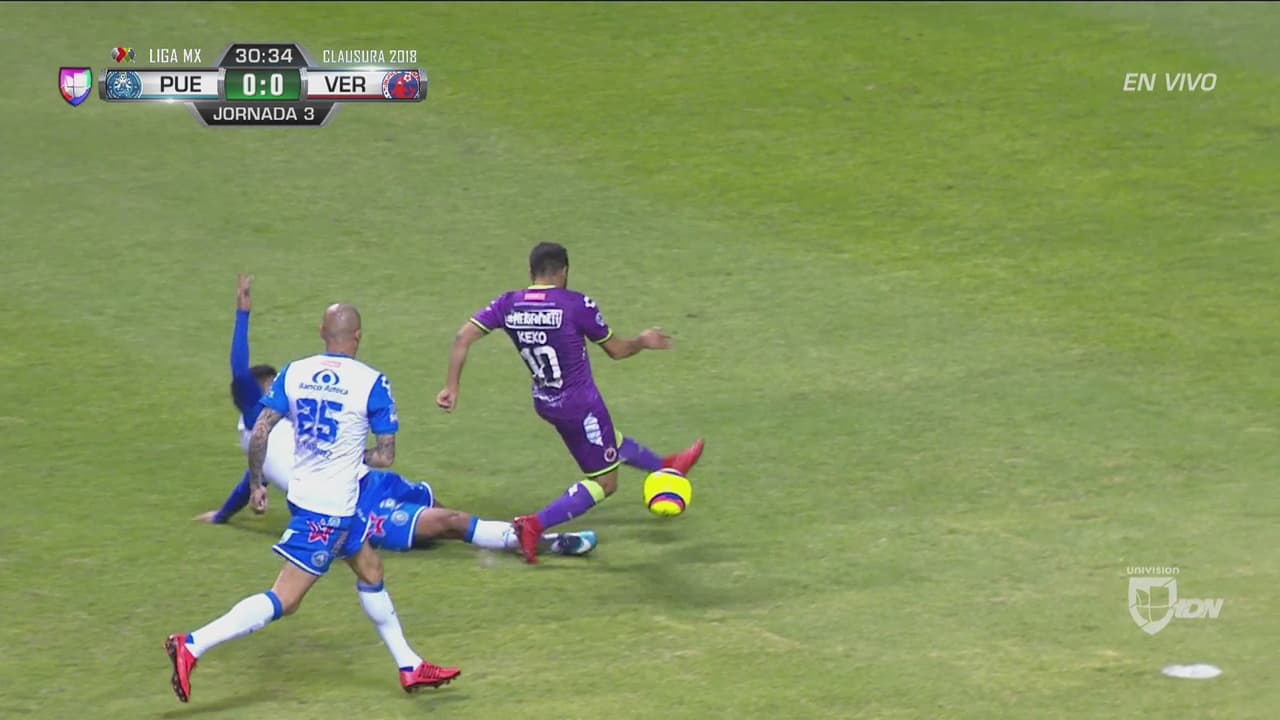 El zaguero de la Franja apareció de último momento para arrebatarle la pelota al 'Keko' Villalva y evitar el primer tanto de los jarochos.