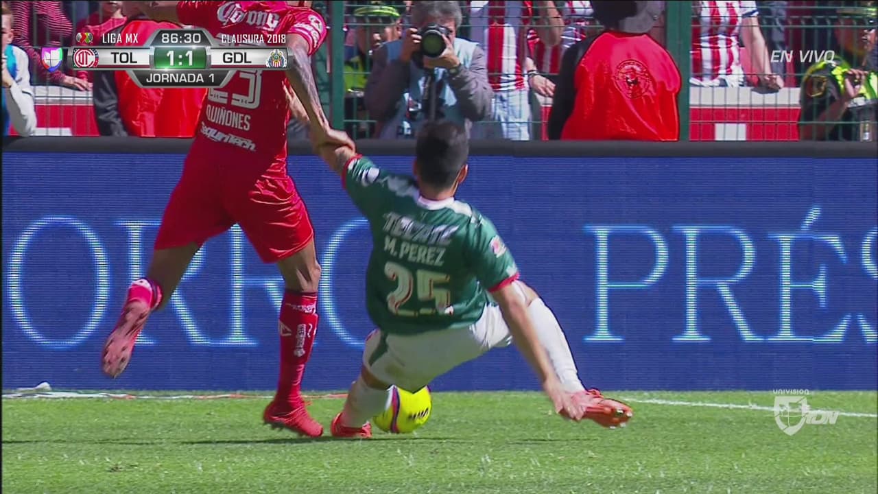 El defensor rojiblanco hizo una oportuna barrida ante el tiro de Luis Quiñones, que amenazaba con acabar en gol.