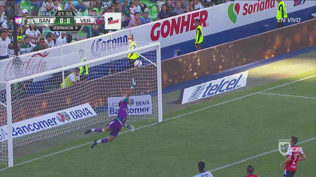 El charrúa buscó ponerle rosca hacia la escuadra del guardameta escualo, quien sacó la mano salvadora.
