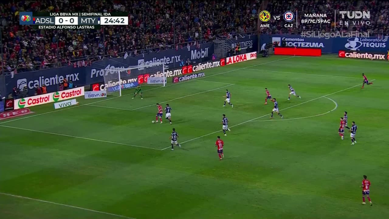 El delantero brasileño se pierde una gran oportunidad mandando su tiro de pierna izquierda muy lejos de la portería de Monterrey.