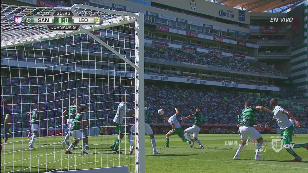 Surgido del tiro de esquina, el capitán de la escuadra esmeralda tenía la posibilidad de abrir el marcador, pero no logra darle la dirección adecuada.