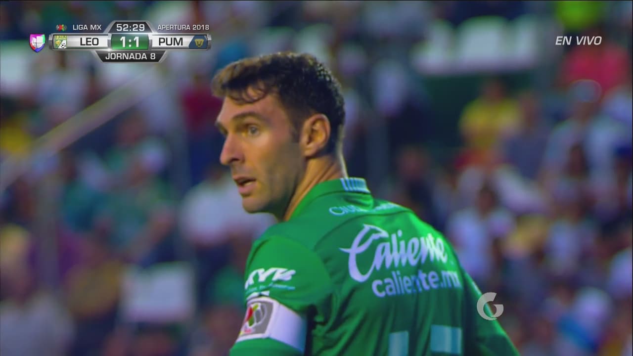 El capitán de la fiera buscaba el remate de cabeza, pero el defensa auriazul le ganó la pelota y la mandó al tiro de esquina.