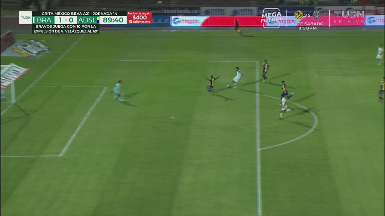 El segundo tiempo careció de futbol, pero no de emociones. Víctor Velázquez fue expulsado y San Luis se lanzó al frente, aunque dejó los espacios para que Bravos contragolpeara con Fabián Castillo y casi marcara el segundo.