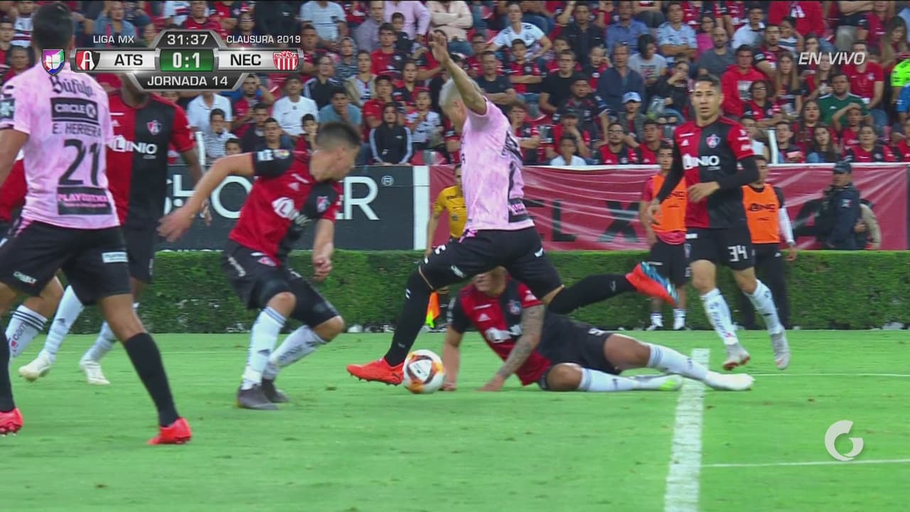 El goleador necaxista buscaba portería, pero el esférico se fue por afuera del primer palo de Pepe Hernández.