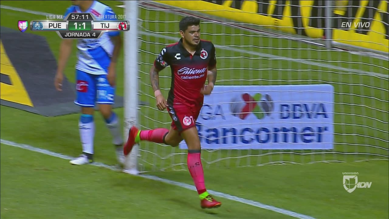 Tijuana anota su primer gol de la temporada en los pies del argentino, quien aprovecha que el juez de línea no señaló una clara posición adelantada.
