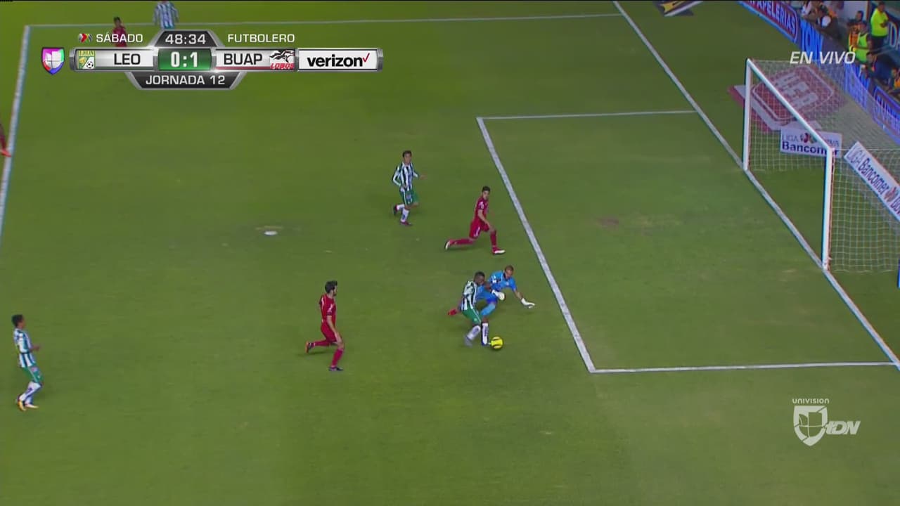León tocó la puerta y el extremo colombiano tuvo el 1-1 pero su disparo se fue arriba de la cabaña poblana.