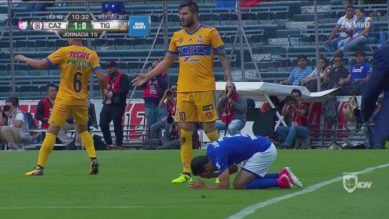 Tremenda agresión del atacante de Tigres en el rostro del futbolista celeste.