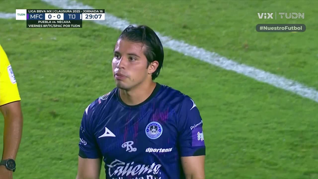 La superficie sintética del estadio de los Xolos le atora su tobillo al jugador de Cañoneros, por lo que debe abandonar el campo.